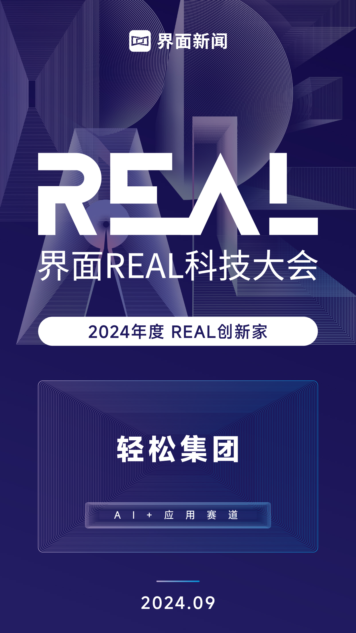 9月6日上午,2024界面REAL科技大会在上海举办。会上,正式公布了本届【REAL 100创新家】榜单。轻松集团凭借自身的不断创新与实践,荣获2024界面REAL 100创新家AI+应用赛道奖。