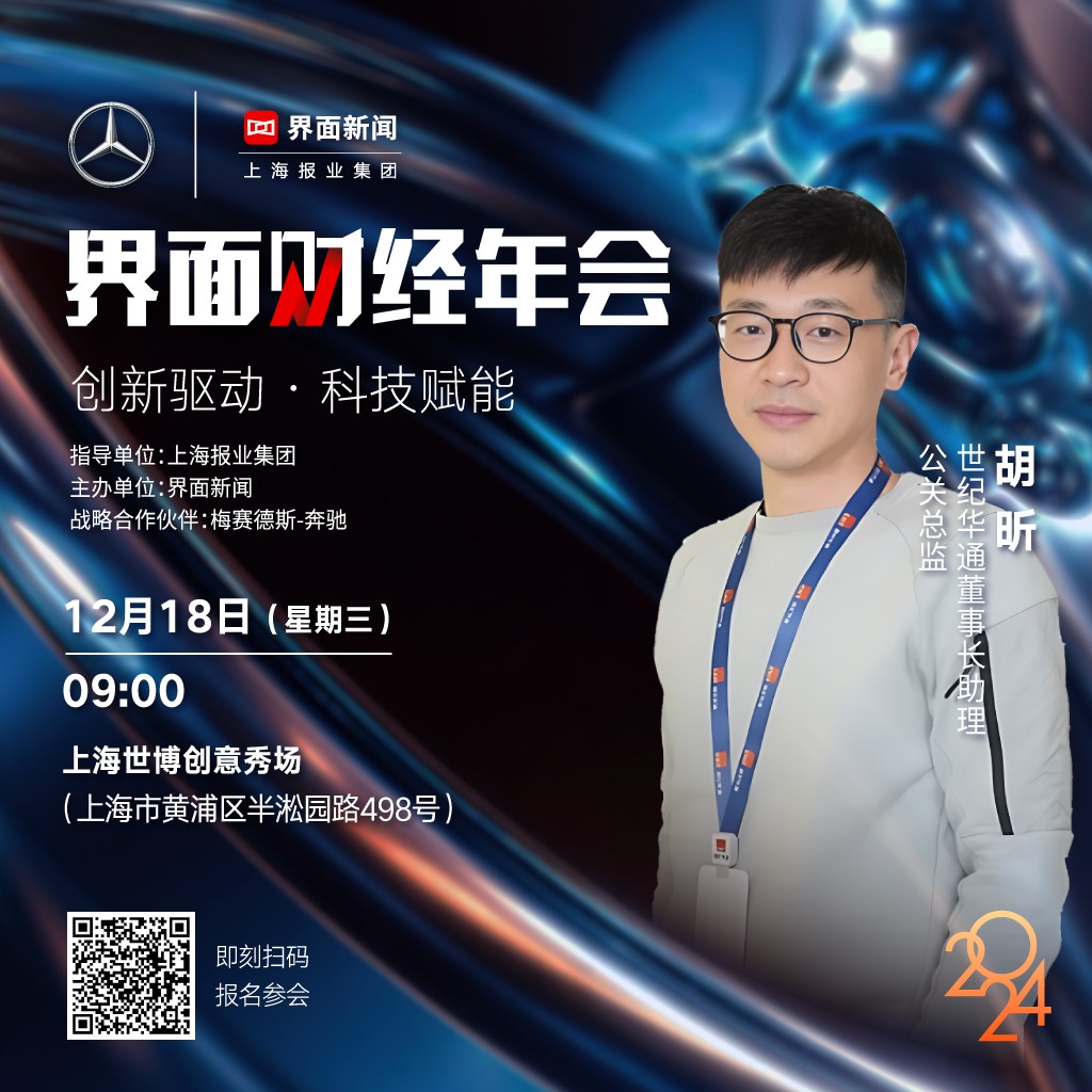 世纪华通董事长助理、公关总监胡昕先生确认出席本届年会。点击“2024界面财经年会”参与报名>>