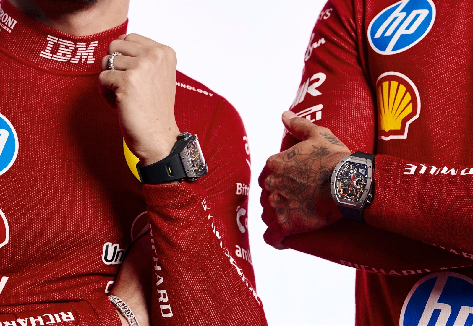 可以看到,RM 43-01腕表才刚刚面世就被汉密尔顿与勒克莱尔戴在手腕上,不仅透露出新款法拉利合作腕表的技艺水准,也展现了这量款腕表优雅与狂野的独特设计风格。
