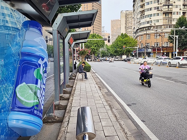 这是脉动最新的户外广告,半个巨大的脉动瓶身从扁平的公交站广告牌上凸出来,从远处看颇为吸睛。但就社交平台上一些评论而言,这一立体瓶身在部分公交站台占据了人们等车的座位空间,使得能使用座位的人数减少,从而招致争议。