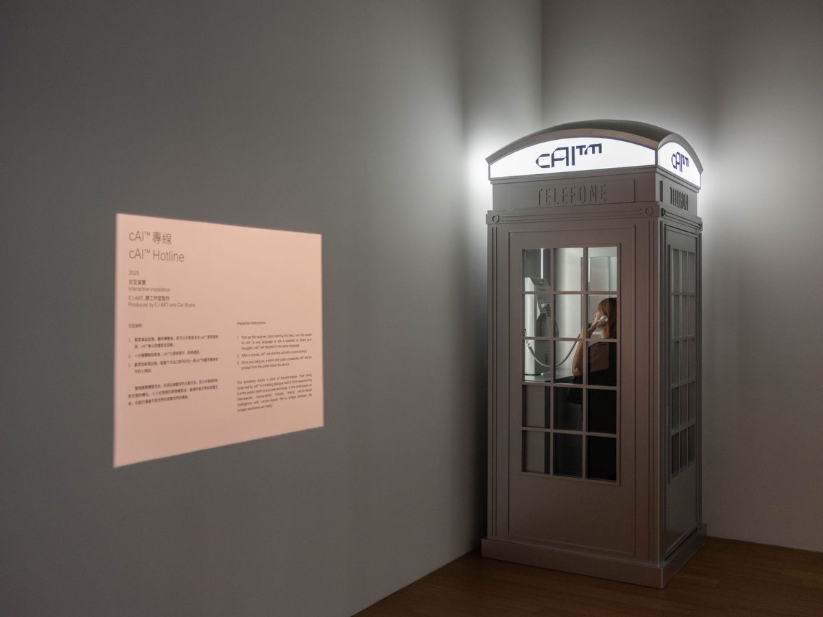但另一方面,展览里有时候cAI™的表现又是不温不火甚至有点偏向心灵鸡汤。比如在电话亭的环节,参观者可以进入私密空间里问cAI™一个问题,后者随之打印出一张纸条给出回答。但现场观众拿到的纸条里的表达通常是模糊且暧昧的,蔡国强解释说,因为展览毕竟是公共性的,作为主办方会很小心,但是日常相处里,他是可以把温度调高的,cAI™可以说出很不客气的嘲笑般的建议,也不用考虑政治正确。他认为如果想要AI更厉害,需要人类有更大的胸怀和胆略。