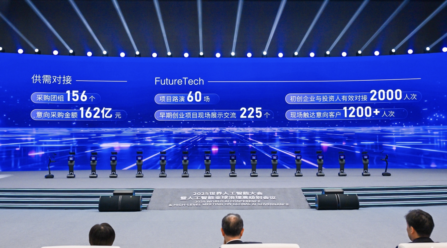 回到WAIC,今年Future Tech板块集合了50家初创企业轮番路演,展示AI最前沿创新,还有投融资对接会推动创新力量。