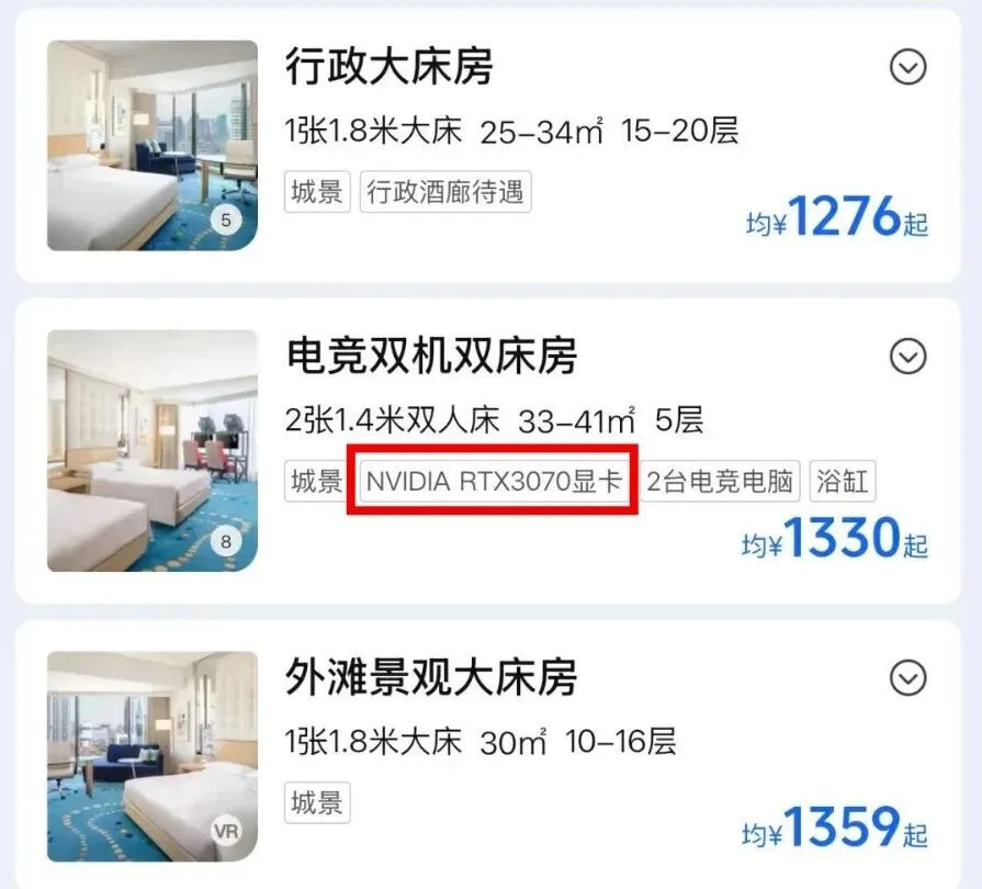 上文提到的上海某五星酒店,电竞房价格高达1330元。