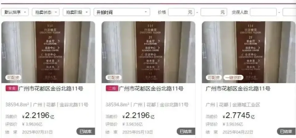 广州富力的空港假日酒店在阿里资产平台先后经历了2次拍卖,均因无人出价而遭遇流拍。