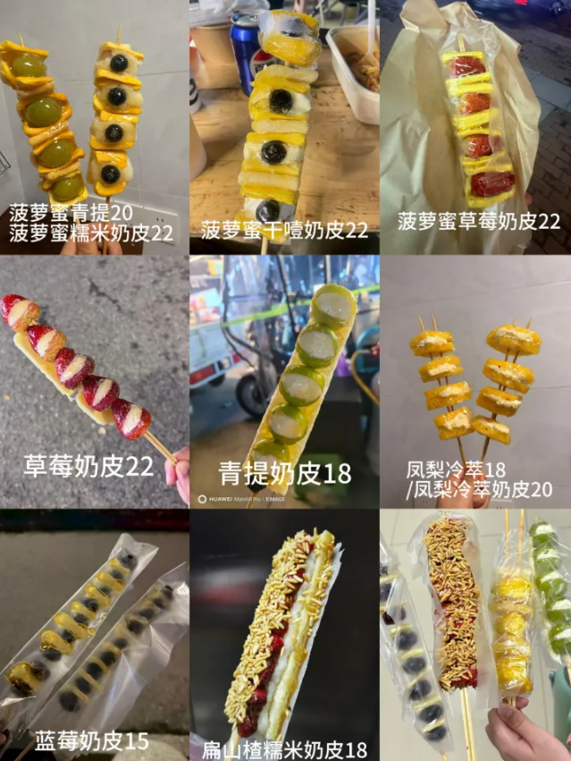 启动成本挺低,工具加包装材料一共才300多块钱。不过在定价上我琢磨了很久,最后定了三档:基础款的山楂糯米12块,水果款16-18块,最贵的奶皮子系列卖20-22块。奶皮子确实是原料里最贵的,从一张17块涨到了30块,而且一张只能做四串。光这一项,一串的成本就要7块多。再加上青提、草莓这些本来就不便宜的水果,还有糯米、糖和包装,算下来每串成本就要十二三块。我卖22块,真就是赚个辛苦钱。