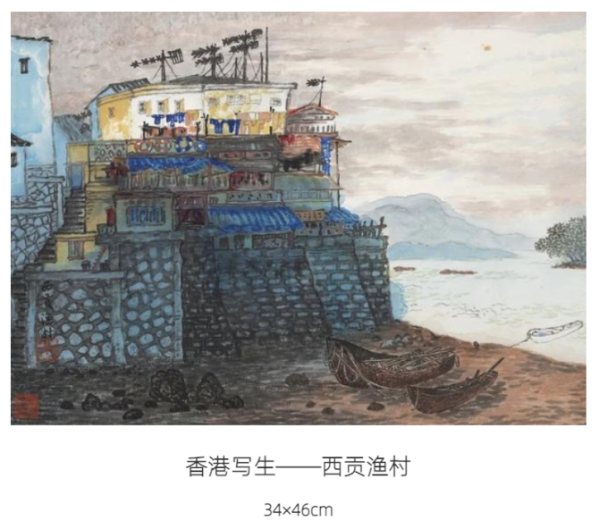 吴泰的写生以国画技法为基调,融合西欧现代绘画的色彩处理,创作了一批富现代精神的作品,清新雄秀,别具格调。在这些作品中我们能感受到前期印象派的光与色,却不失水墨本源。上世纪末,港澳的风土人情,一山一水,一街一景,历历在目,不无写记之意。